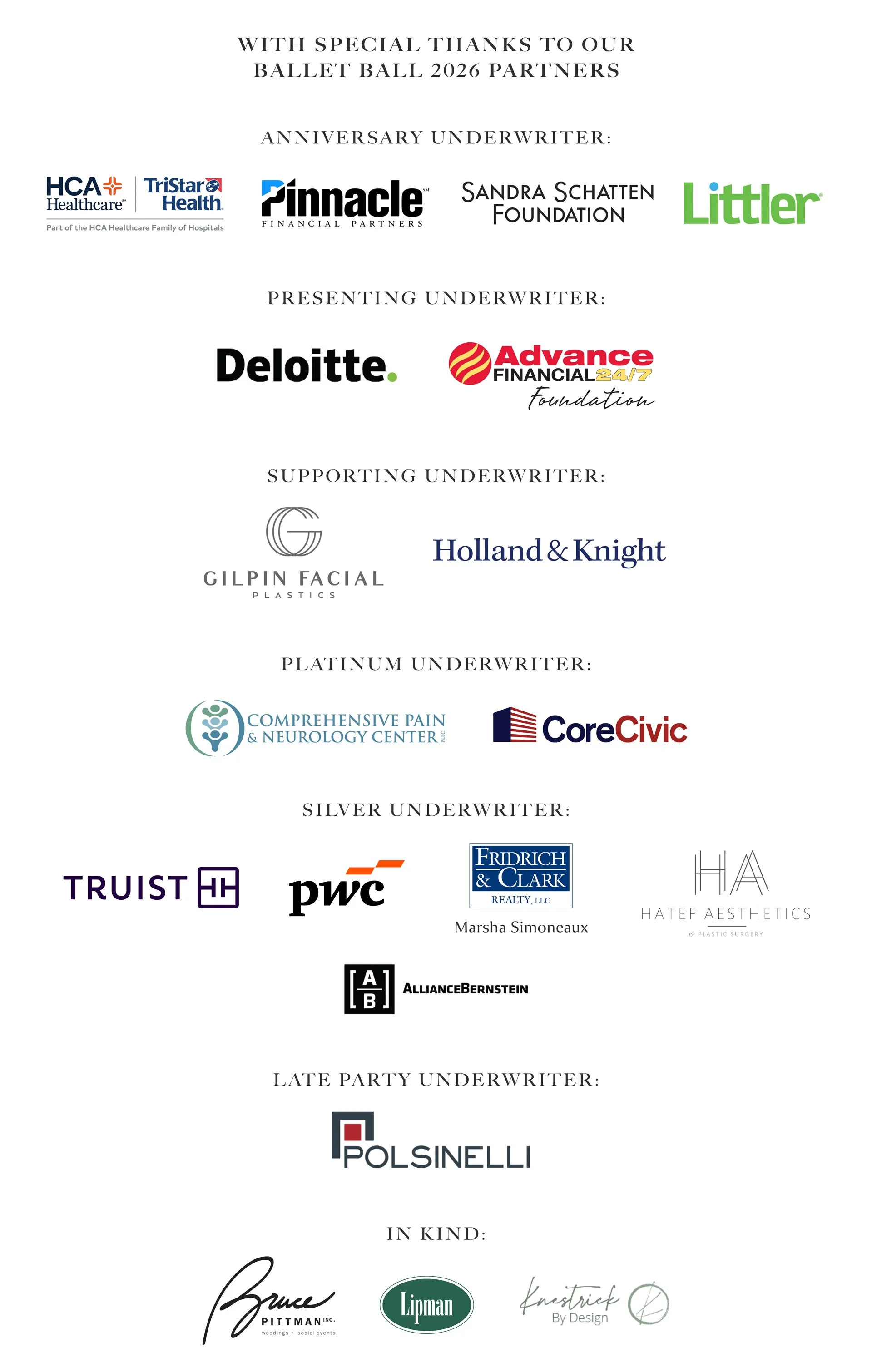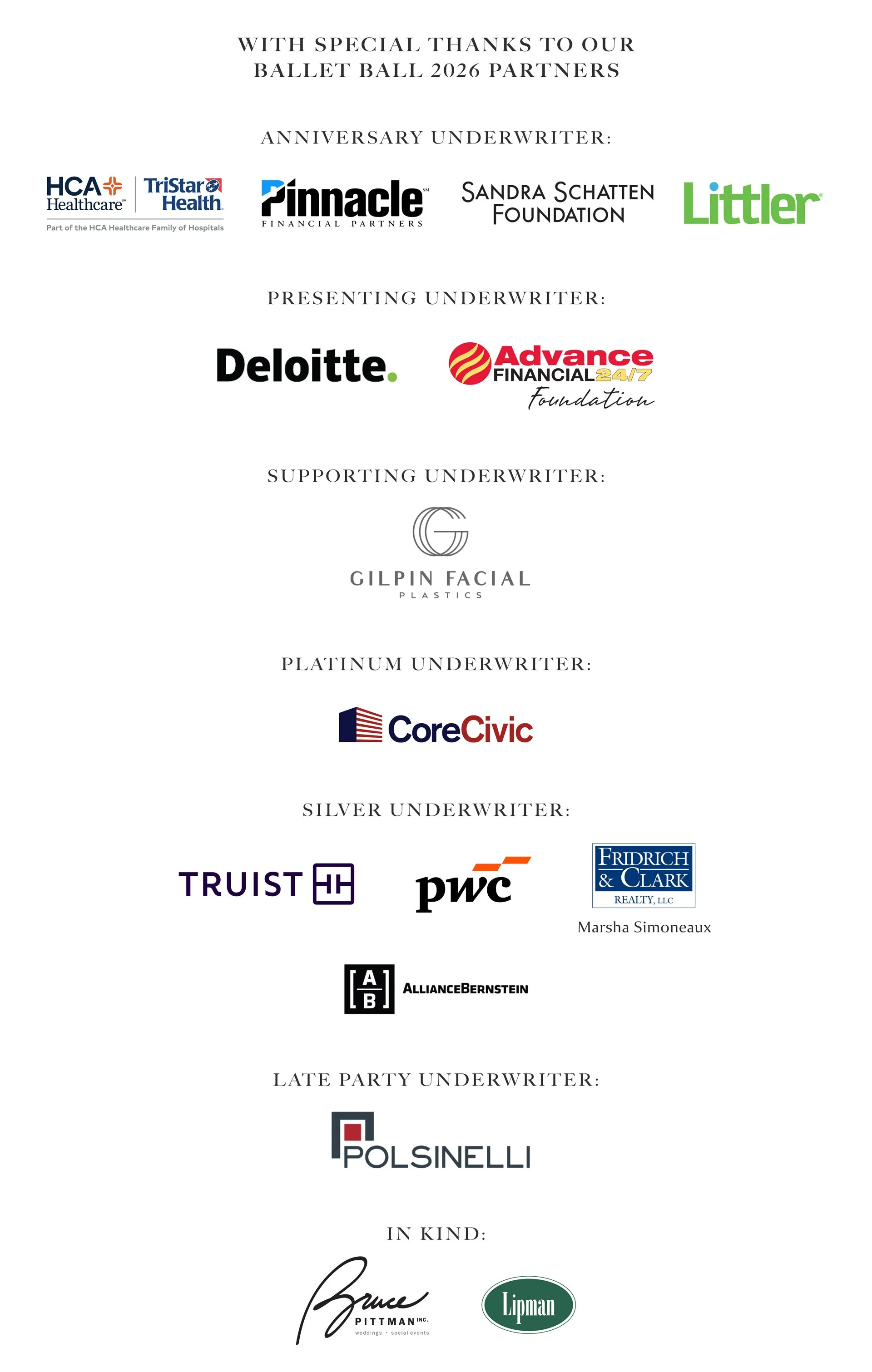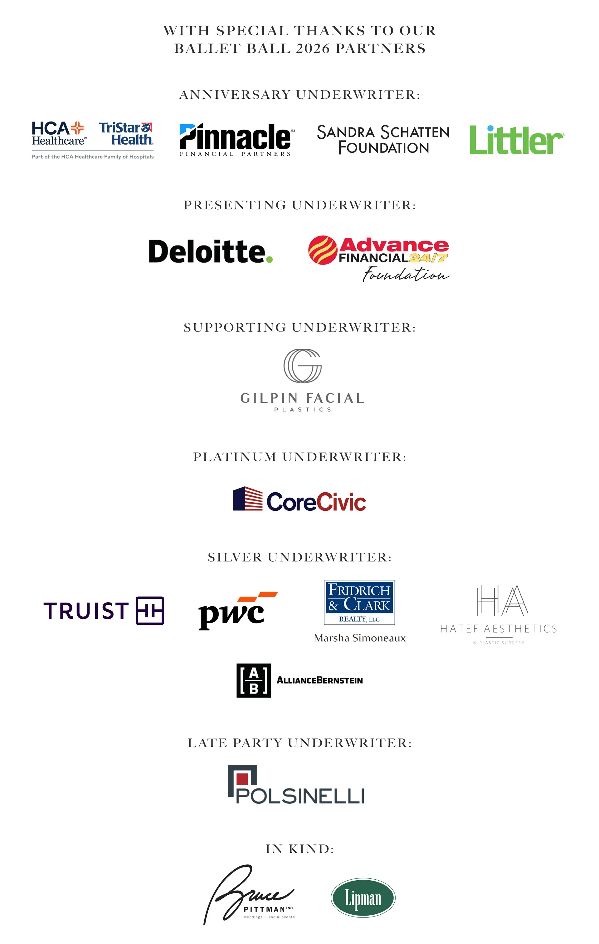 Underwriting opportunities are available now to the public and provide access to all Ballet Ball events.